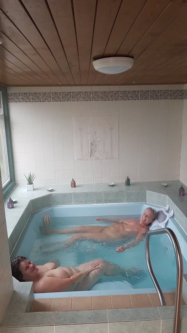 A quick soak in the Jacuzzi inbetween serving food for Noah Ark naturist club. #normalisingnaturism #naturism #Jacuzzi pic.twitter.com/hvzbzdHuOC